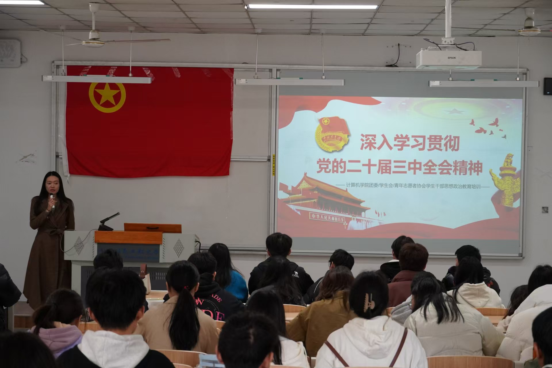 在此次培训中,倪书记以党的二十届三中全会精神为指导,认真讲解党的二十大和二十届一中、二中全会精神,全面贯彻习近平新时代中国特色社会主义思想,深入学习习近平总书记关于全面深化改革的一系列新思想、新观点、新论断。倪书记围绕学生干部的思想政治建设、角色认知与定位、责任意识等多方面进行了深入讲解。他强调,学生干部不仅是学生群体的一员,更是肩负着引领和服务重任的先锋力量,必须不断提升自身政治素养和思维建设,以实际行动践行党的二十届三中全会精神,为同学们的学习和生活环境创造更多价值。